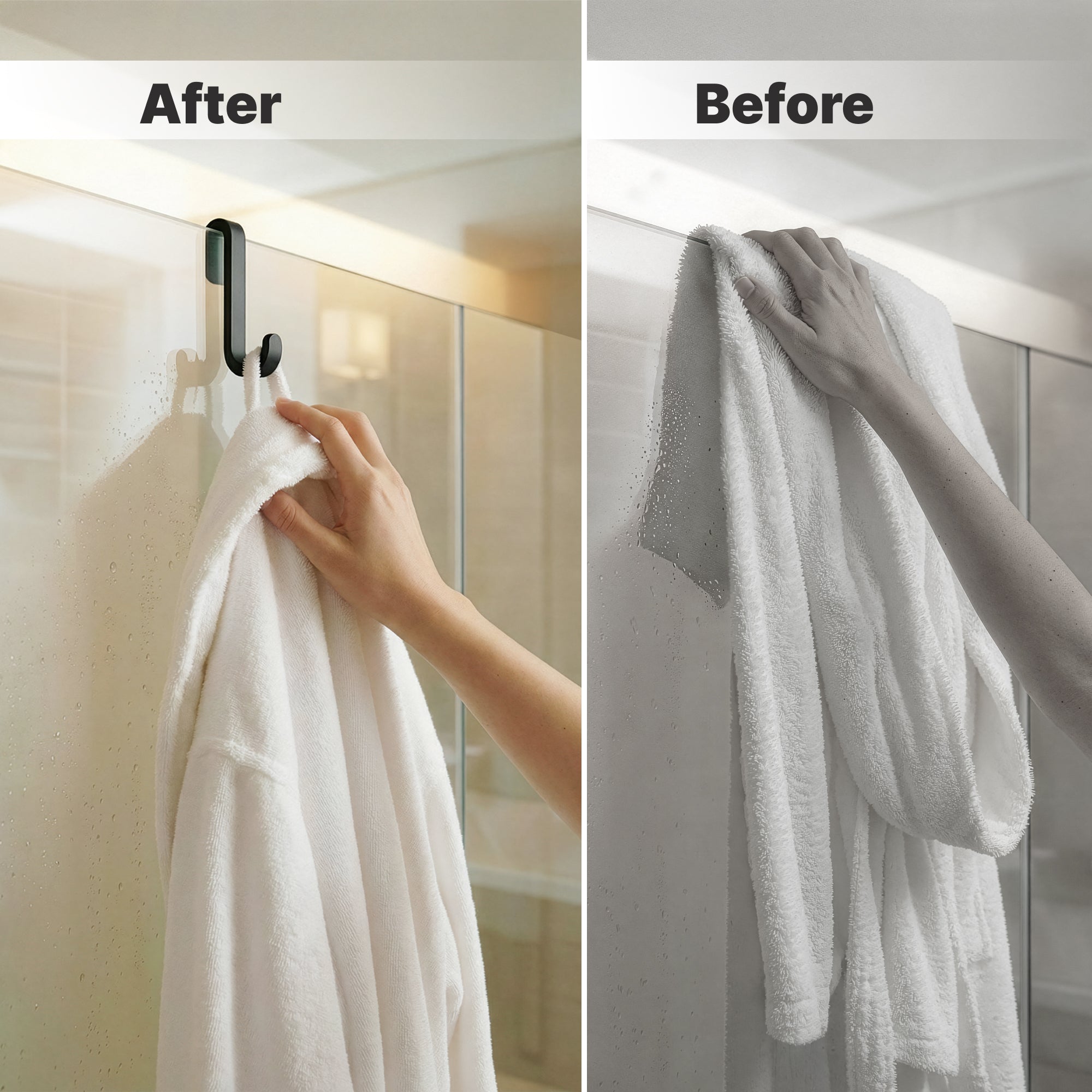 Geen plek voor handdoeken of badjassen in de douche. En geen zin om te boren. De Minismus 2 Pack douchedeurhaak geeft je direct extra ophangruimte, gewoon door hem over de douchedeur te hangen.