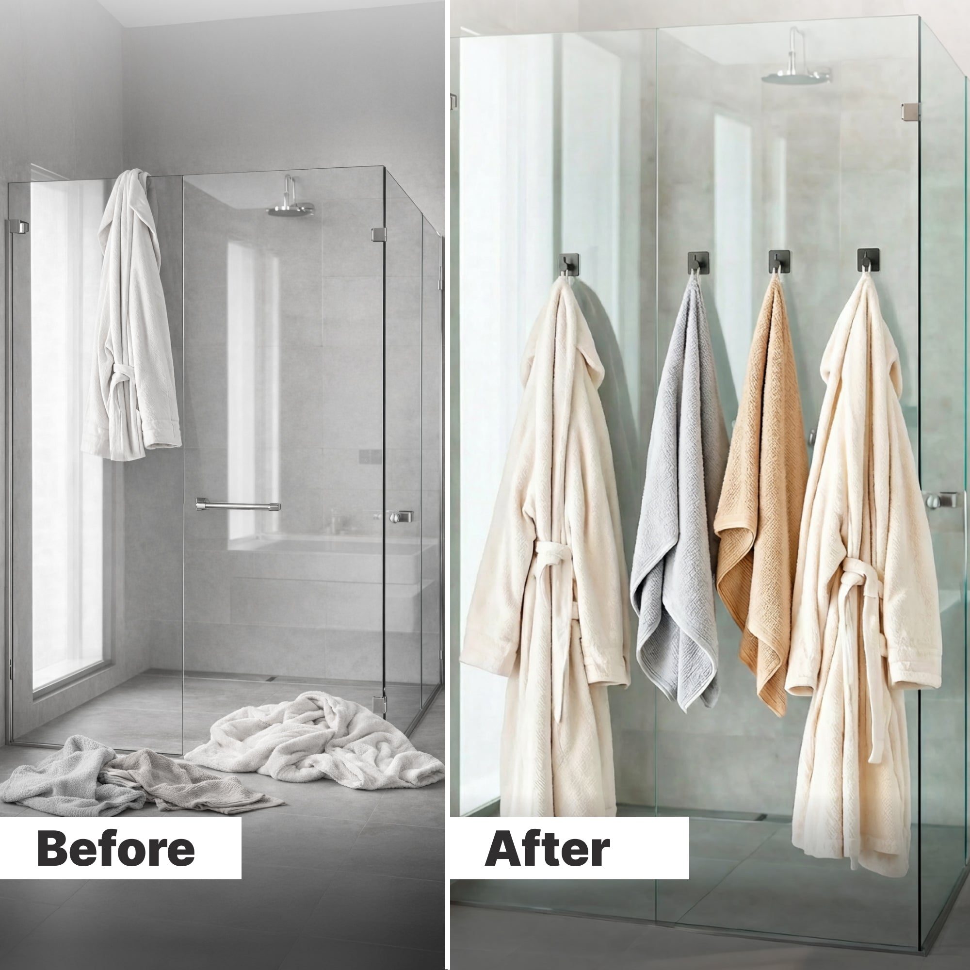 Deze zelfklevende wandhaken zijn gemaakt voor drukke huishoudens. Je hangt handdoeken, tassen en accessoires stevig op, zonder de muur te beschadigen. Het slanke, ronde ontwerp zit dicht op de wand, bespaart ruimte en past naadloos in moderne interieurs. Ideaal voor badkamer, keuken, slaapkamer of hal, overal waar orde telt.