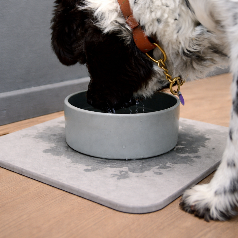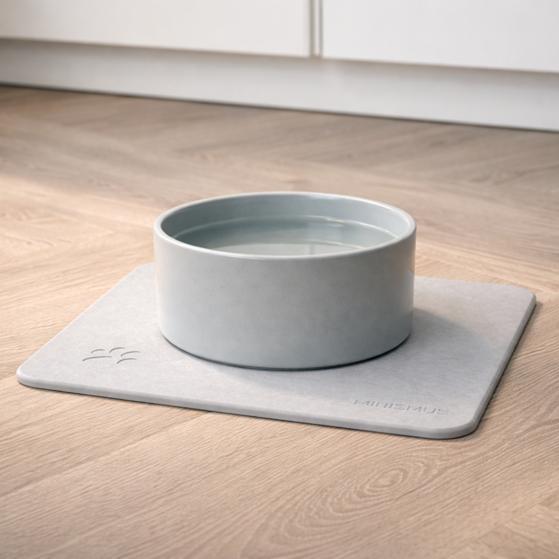 Die Diatomit Unterlage nimmt Wasser sofort auf, sodass Spritzer nicht erst zu Pfützen werden. Weil die Matte schnell trocknet und Schimmel, Bakterien und Gerüche hemmt, bleibt der Bereich um den Napf nach jeder Nutzung trocken und hygienisch.