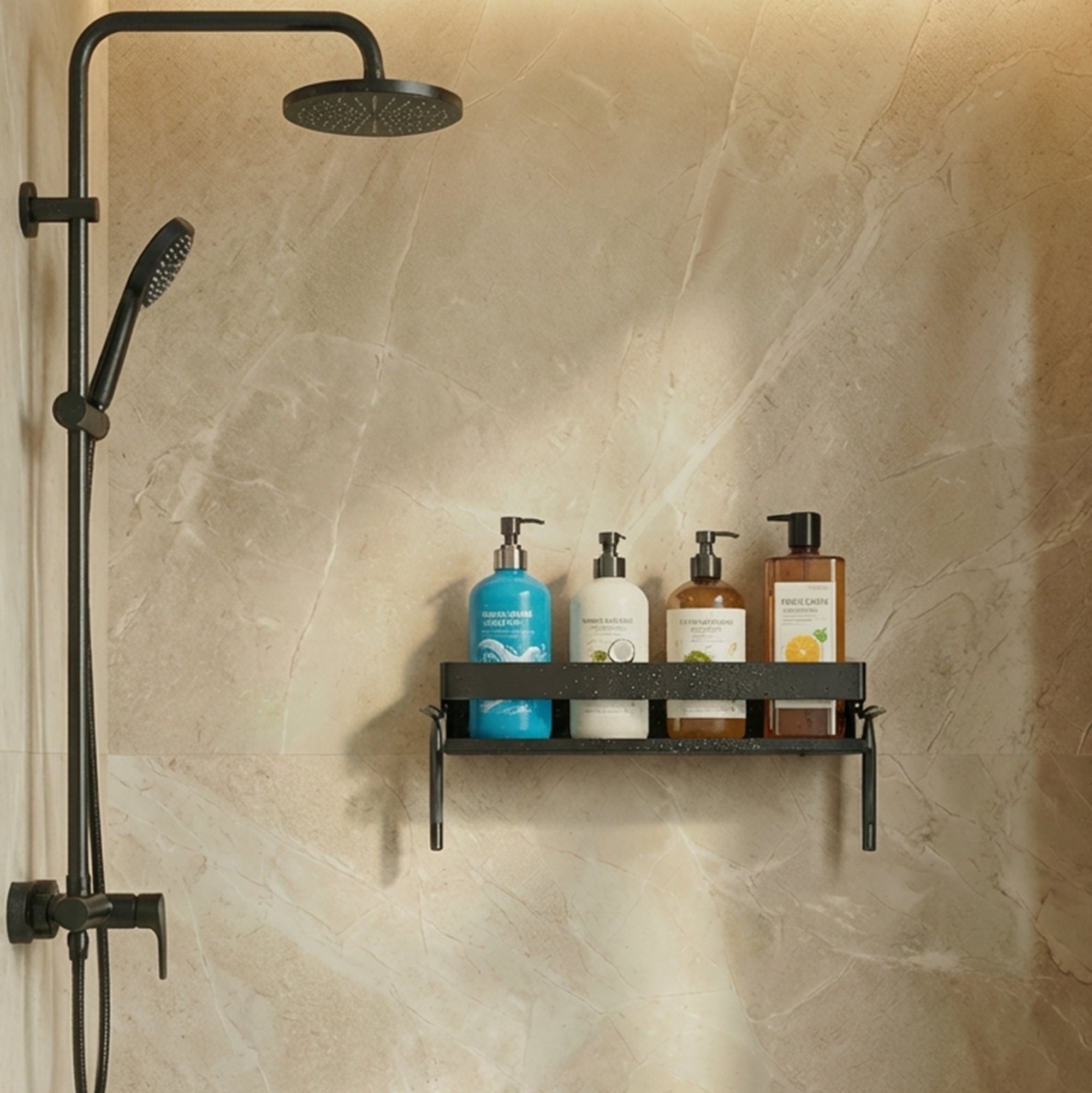Die Minismus Duschablage hilft Ihnen, Ordnung in Ihrem Badezimmer zu schaffen. Mit ihrem schlanken und modernen Design bietet sie ausreichend Platz für Ihre täglichen Duschutensilien, während sie gleichzeitig kompakt genug ist, um auch in kleinen Räumen Platz zu finden.