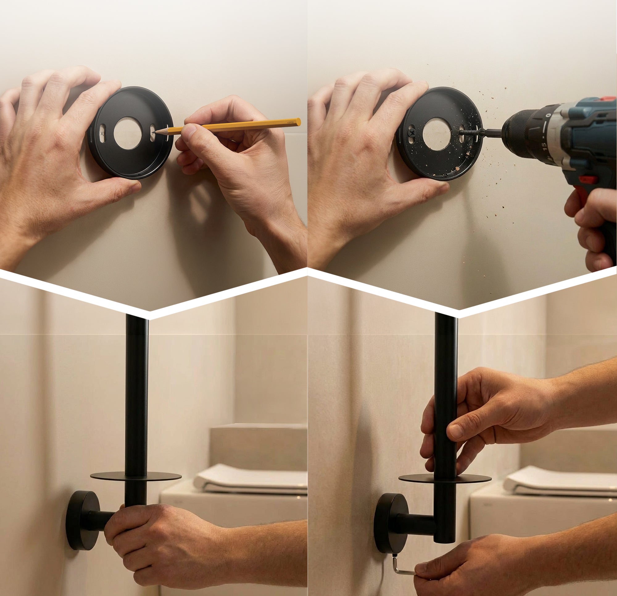 This holder is designed to mount on the wall, saving floor space and keeping rolls clean and dry. The raised design helps protect toilet paper from splashes and moisture in humid bathrooms. Made from rust resistant stainless steel with a matte black finish, it is built for daily use and easy to clean.