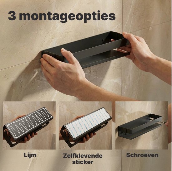 Built to withstand humid environments, this shower caddy features a protective black coating that prevents rust, ensuring durability even in wet conditions. This robustness is backed by its ability to handle daily loads, tested to support weights up to 15 kg when securely mounted with screws.
